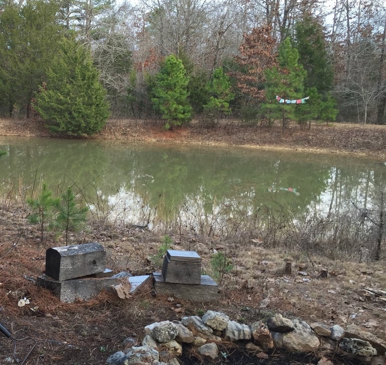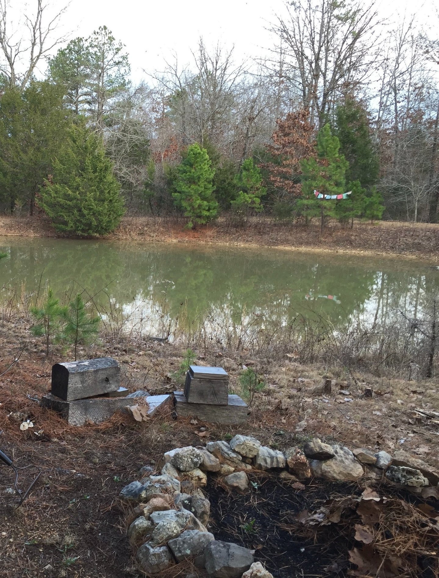 The council fire area overlooking the pond at Life Healing Community.